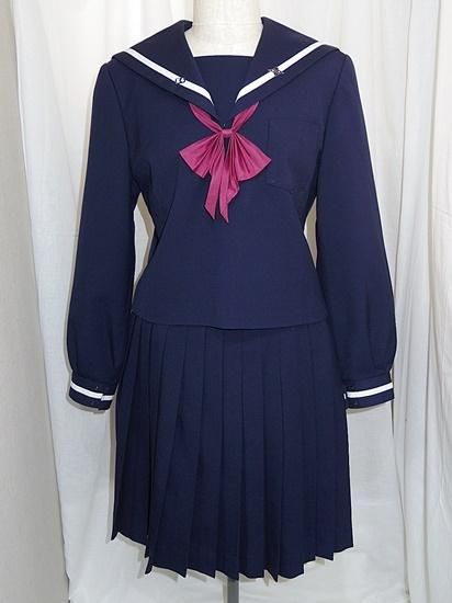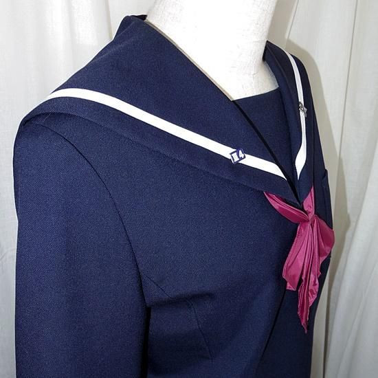 セーラー服上下冬/校章,組章付き/指定リボン<W68-62:170A>(B386)中古/jk制服/日本校服