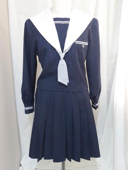紺色冬セーラー服上下に襟カバーと指定ネクタイが付きます。スカートは組合せ品です。