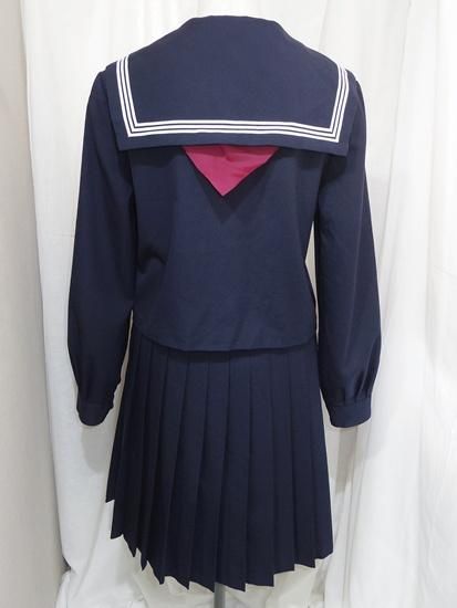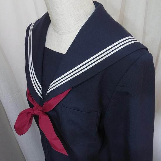 紺色冬セーラー服上下に中古スカーフが付きます。スカートは裏地付きです。